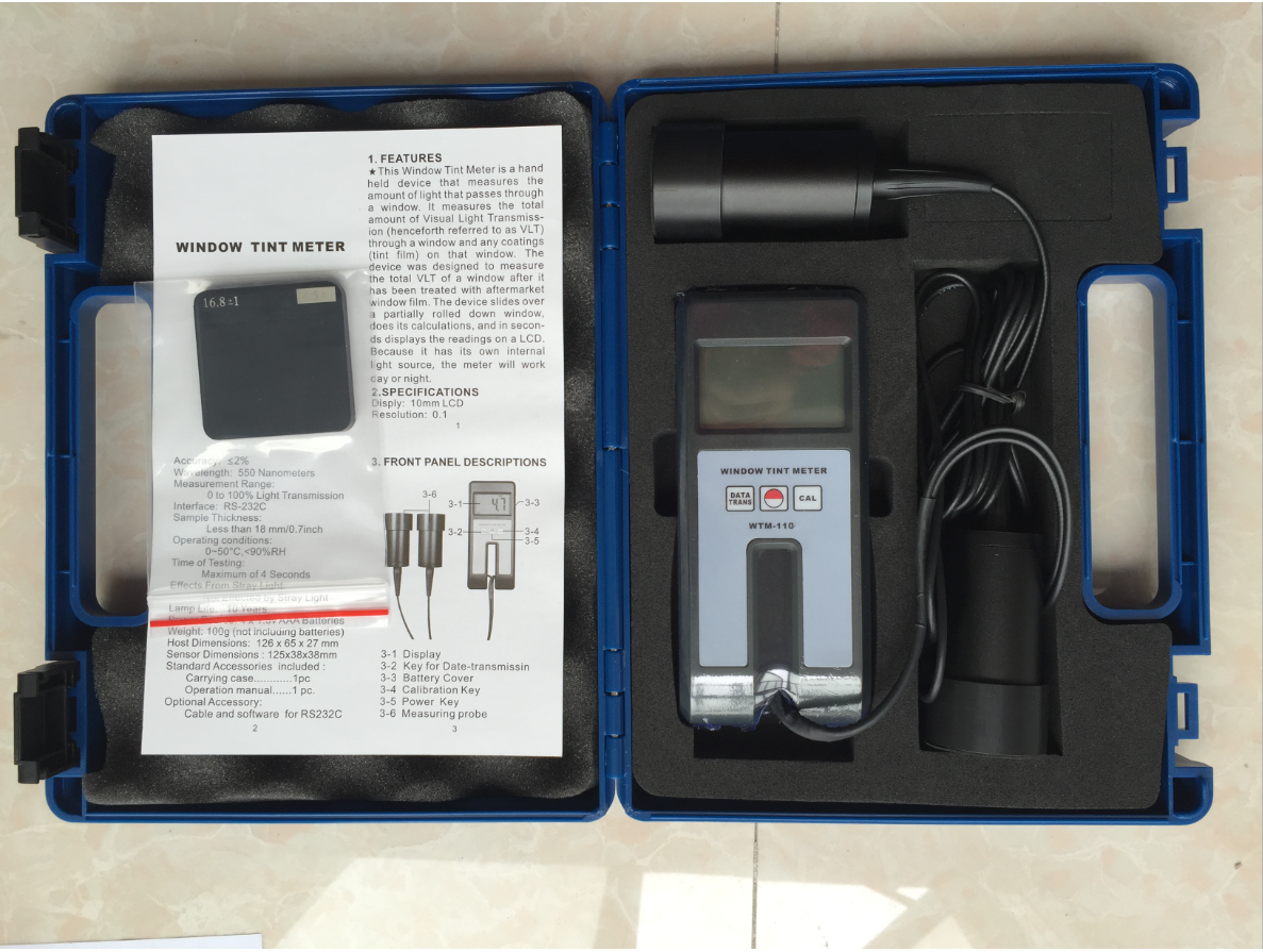 * This Window Tint Meter is a hand held device that measures the amount of light that passes through a window.
